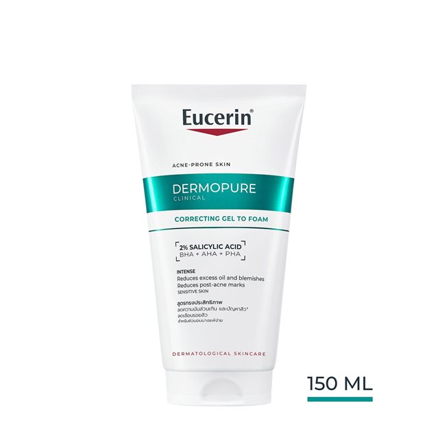 Cleanse skin in the morning and evening: am: to remove the sebum and dead skin cells that have accumulated overnight pm: to remove make-up and free skin from the day’s dirt Use gentle cleansing products such as Eucerin DERMOPURE Cleansing Gel with lukewarm water and follow with an appropriate toner. You may also benefit from using a scrub once a week to unclog pores and refine skin texture. We do not recommend using an alcohol-based toner and the scrub alongside acne medication as it can make skin more sensitive.