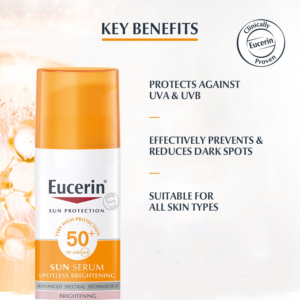 Eucerin Sun Creme SPF 50+ is an advanced facial sunscreen designed specifically to protect against sun-induced skin ageing and pigment spots. For normal and dry skin. Water-resistant.